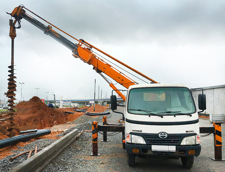 У нас вы можете заказать услуги Ямобура Тадано. Глубина бурения до 20 метров. Выдвижная стрела позволяет бурить в любой точке в радиусе 12 метров от машины. Диаметры буров от 200 мм до 800 мм.